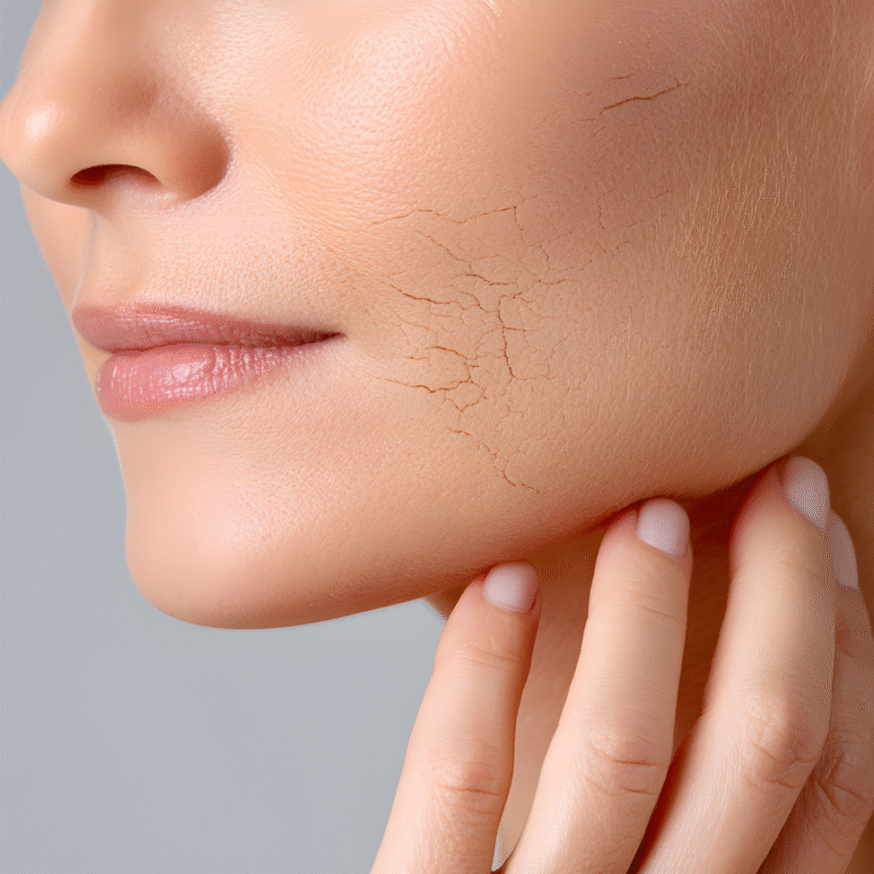 - Da khô, thiếu ẩm: Đây là nhóm da phổ biến nhất ở phụ nữ tuổi trung niên. Khi estrogen giảm, tuyến dầu hoạt động yếu hơn, khiến da khô, bong tróc, nếp nhăn hằn rõ và da mất độ căng mướt.