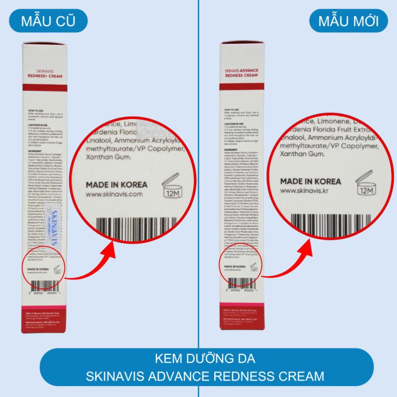 Nhằm nâng cao trải nghiệm sử dụng cũng như tối ưu khả năng bảo quản sản phẩm trong điều kiện sử dụng thực tế, Skinavis đã tiến hành điều chỉnh thiết kế bao bì cho dòng Advance Redness Cream. Phiên bản bao bì mới được thiết kế theo phong cách tối giản, hiện đại, giúp sản phẩm trông tinh gọn hơn, dễ sử dụng và thuận tiện hơn trong quá trình bảo quản lâu dài.